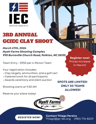 Team Entry – $950 per 4-Person Team Your registration includes: • Clay targets, ammunition, and a golf cart • Catered lunch for all participants • Awards ceremony and silent auction Shooting starts at 9:30 AM Fill out your Registration Form HERE ...